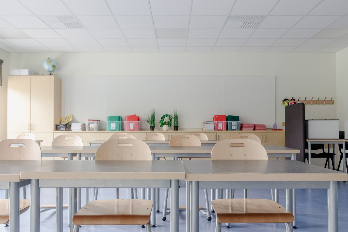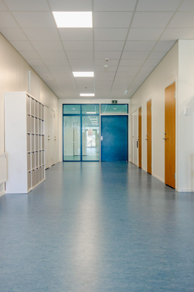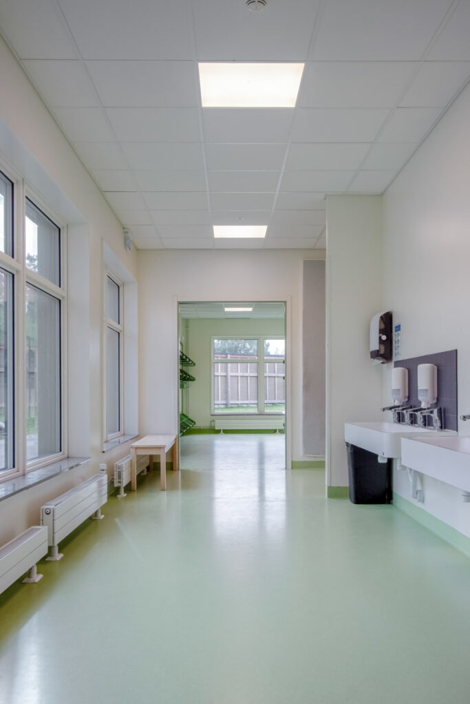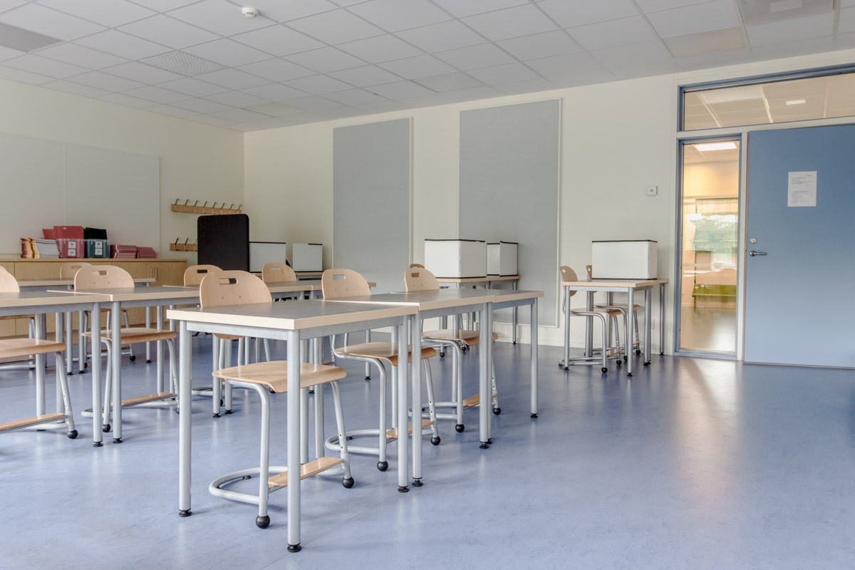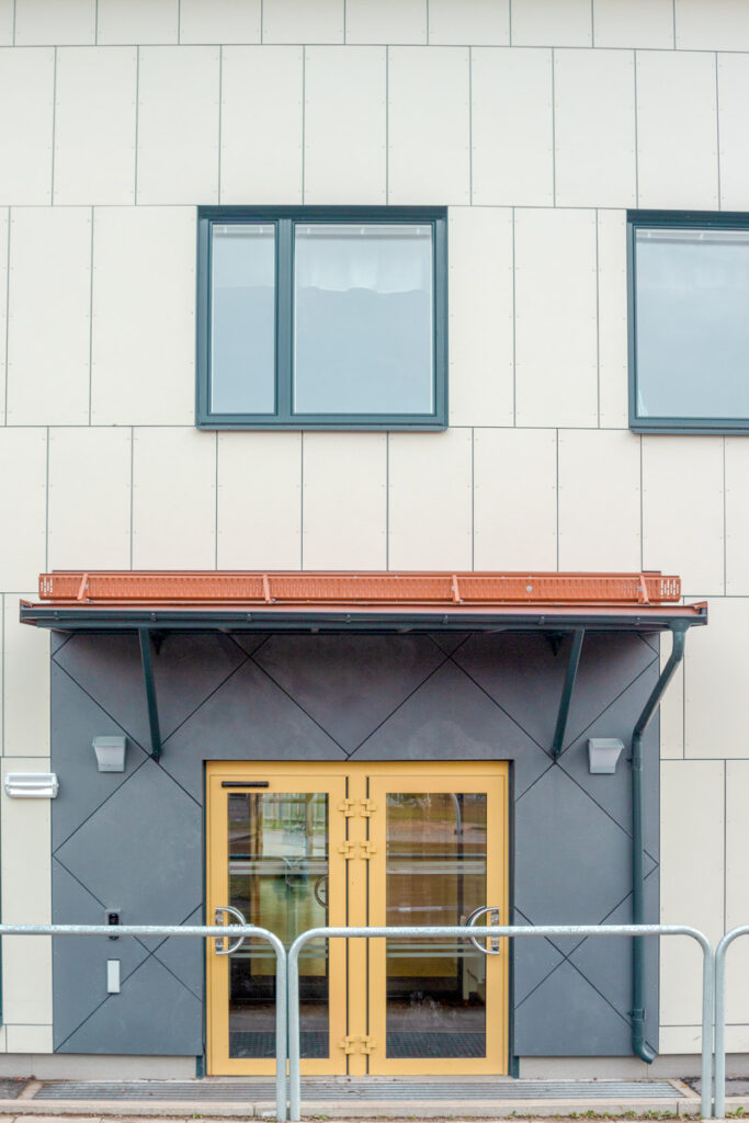 Skogsbo skola är en ny byggnad på ett befintligt skolområde, med 8 st klassrum samt kök och matsal.